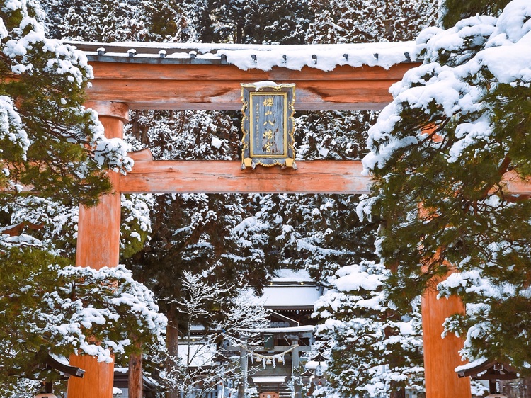 每年秋季举行的高山祭的主社。创建于377年,依山而建。雪后清晨,樱山八幡宫就像童话故事里的场景!白色的墙体和红色的窗户在洁白的雪地映衬下,美得让人心醉!