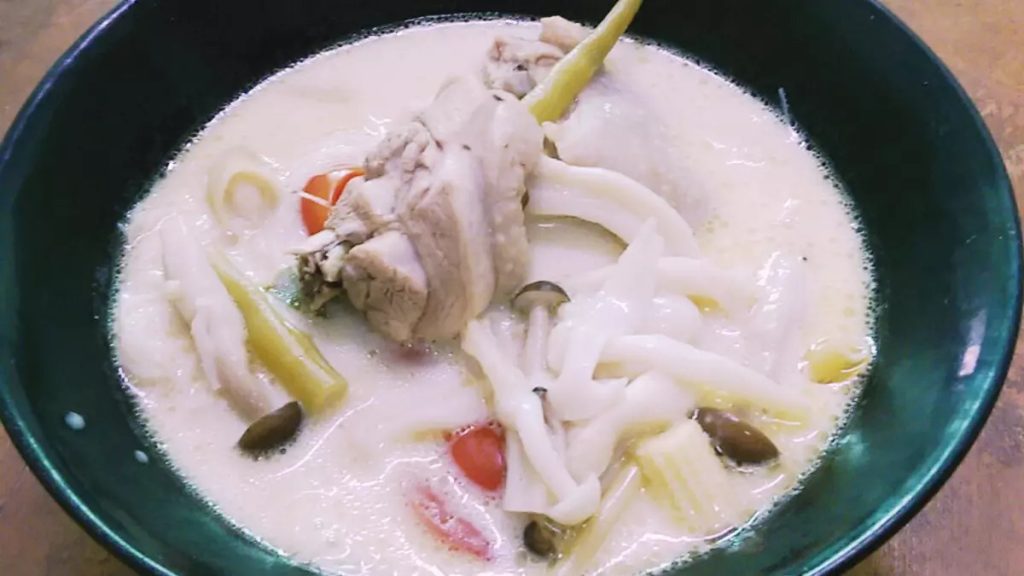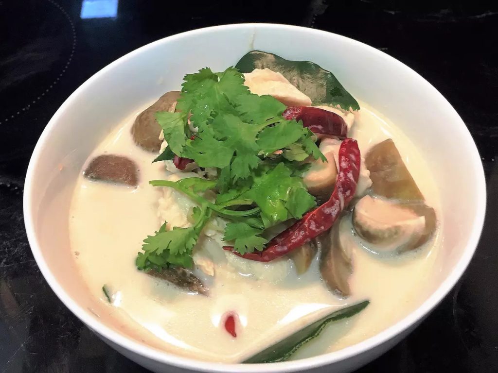 最后,一撮鲜翠欲滴的酸橙叶,如同晨曦中的露珠,轻盈点缀其上,为这道椰香四溢的佳肴添上了几分清新与灵动。正如泰国众多汤品所共有的魅力,椰汁鸡汤亦诚邀您以一碗热气腾腾的蒸米饭为伴,让这份奶香浓郁、层次分明的美味,在舌尖缓缓绽放,共赴一场关于味觉与心灵的双重盛宴。