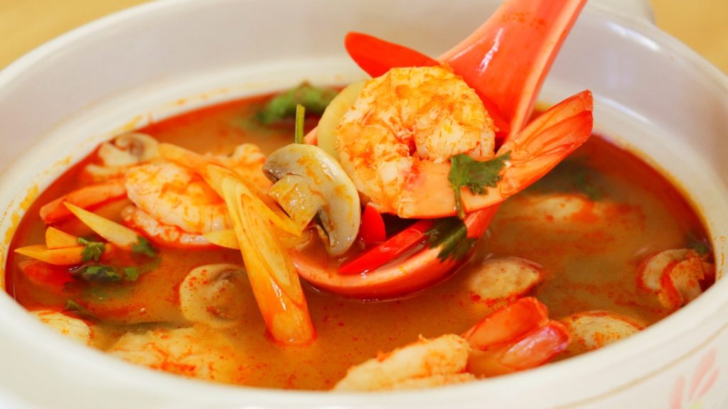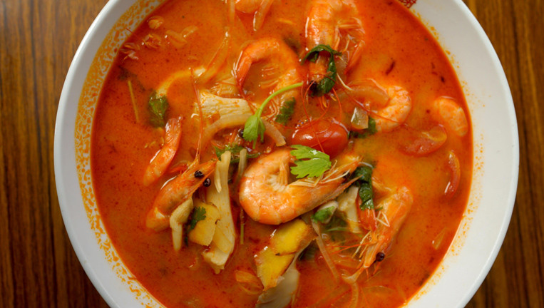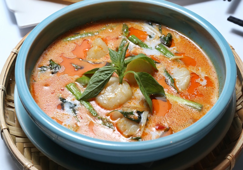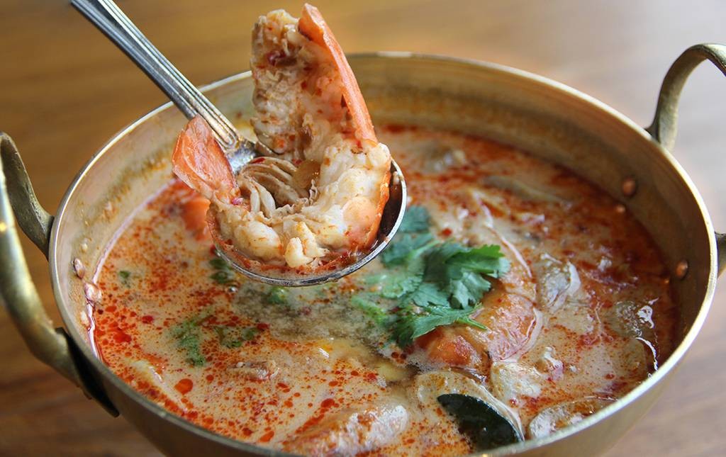 冬荫功(Tom Yum Goong),一盅汇聚自然之灵韵的味觉盛宴,慷慨地融入了香茅的清新、辣椒的热烈、高良姜的深邃、青柠叶的轻盈、青葱的翠绿生机,以及酸橙汁的俏皮与鱼露的醇厚,交织成一首酸辣交织的味觉交响乐,瞬间唤醒沉睡的味蕾,让人欲罢不能。