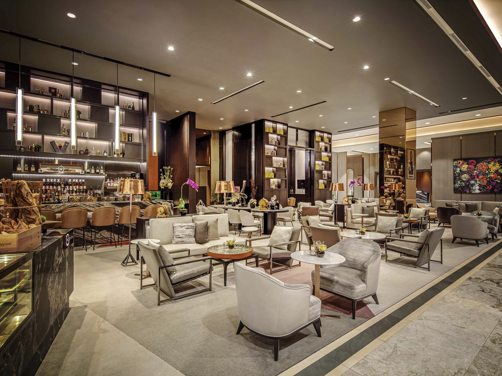 酒店餐厅:MO BAR 屡获殊荣,被誉为全球及亚洲50家优质酒吧之一。酒吧设计时尚摩登,同时拥有落地窗,无论是白天还是夜晚,都可以在这里边饮酒边欣赏迷人的滨海湾景观。