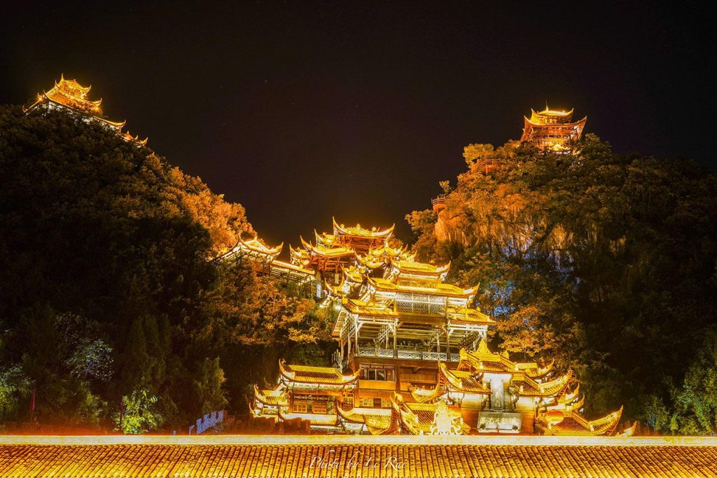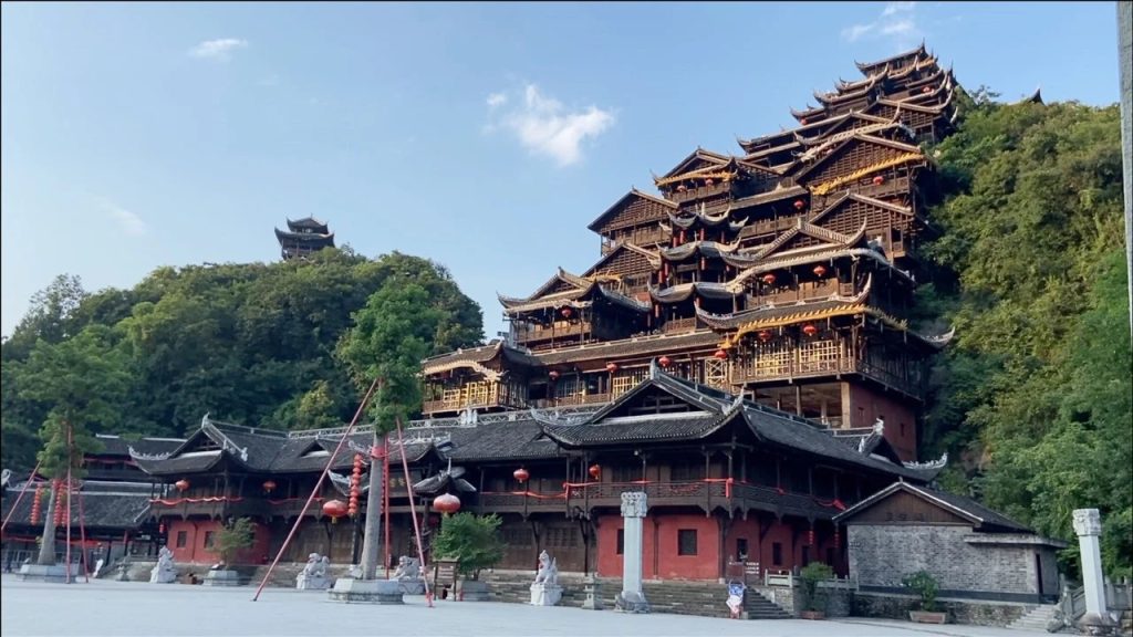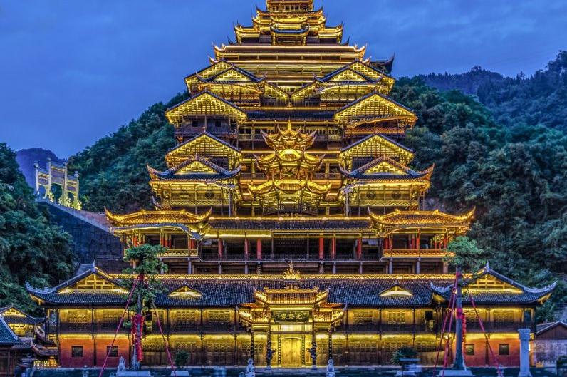九黎宫:高度为99米,象征着“九五之尊”的称号,是我国规模最大的融四合院与吊脚楼。