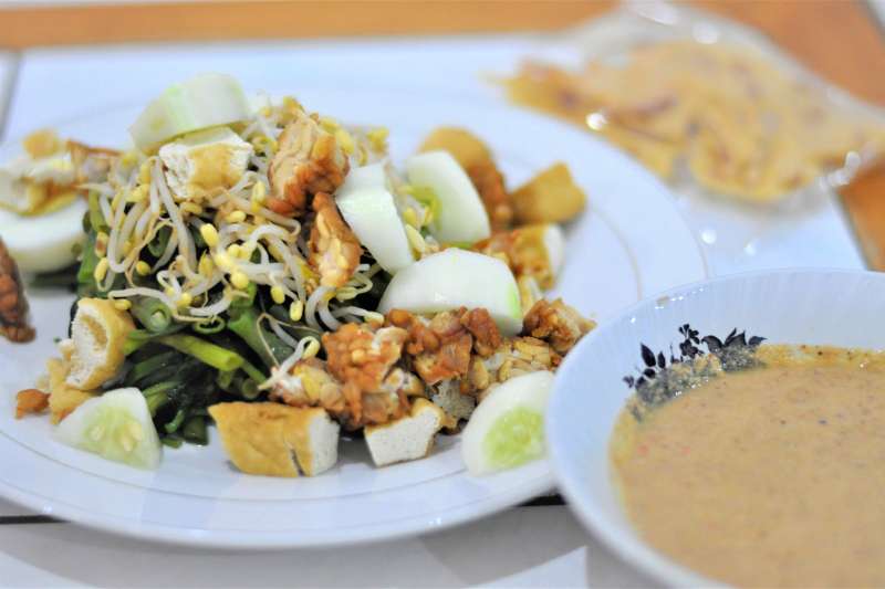 加多加多也叫“砂锅屋”,是一道传统的印尼沙拉,由各种蔬菜、水果、米粉和鸡蛋组成,配有花生酱和甜酱。口感丰富多样,味道酸甜可口,清爽开胃。