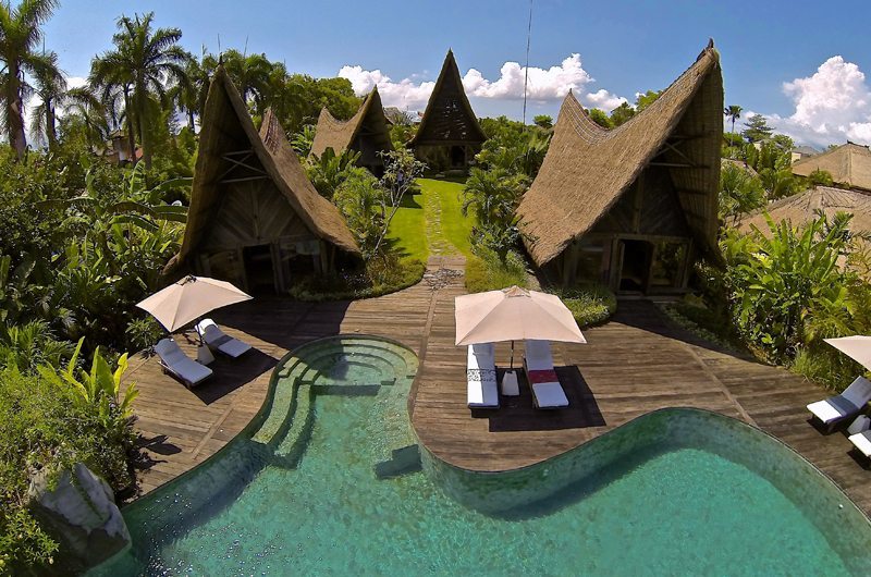 一栋栋竖立在热带植物中的茅草小屋,特殊又显眼的造型屋顶,Own Villa Bali 的灵感来自北苏门答腊的传统房屋,巧妙的融入了巴厘岛当地的自然环境,被郁郁葱葱的绿丛包围更增添了一分神秘的气息,仿佛是一座与世隔绝的小村庄!
