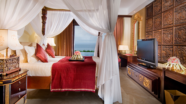 矗立在巴厘岛布奇半岛南海岸线上的峭壁高原上,距离最美日落海湾金巴兰仅仅 15 分钟的车程,恣意独享居高临下远眺着印度洋与辽阔天空连成一线的美景,无需与他人分享便能尽情沉溺于静谧又迷人的巴厘岛!