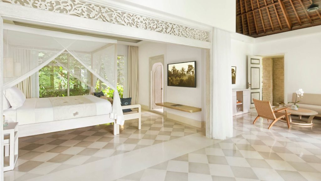 COMO Uma Ubud 拥有 46 间客房、套房和别墅,坐落在度假村中心的林荫小道两旁,每间房都有景观庭院和超大的落地窗外头风光明媚直接洒落整间房,部分的房型还附有私人游泳池、宽敞的日光浴露台,眼前就是丛林或缇伽姆普山谷的景致!