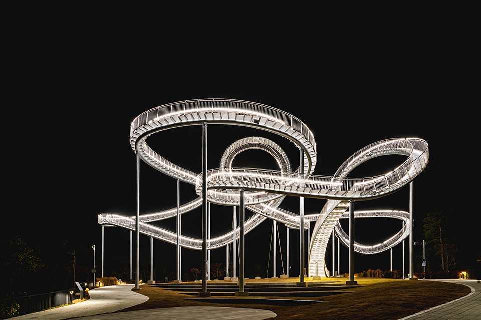 单看照片可能会以为是过山车,但其实这个景点是一座可以让人行走的空中体验雕塑。