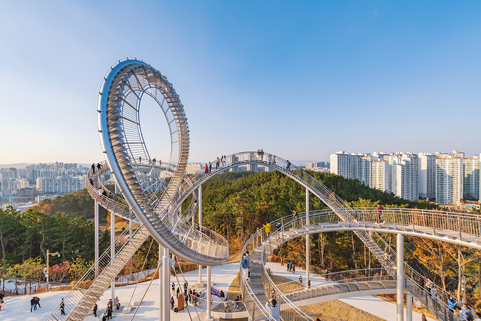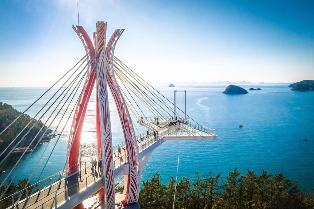 如果你有看过车银优和文佳煐的漫改韩剧《女神降临》,他们在第 14 集的约会地点就是 2020 年尾开放的庆尚南道新景点「Seolri Skywalk」,被称为「南海全新绝景」更在剧集加持下成为约会圣地。