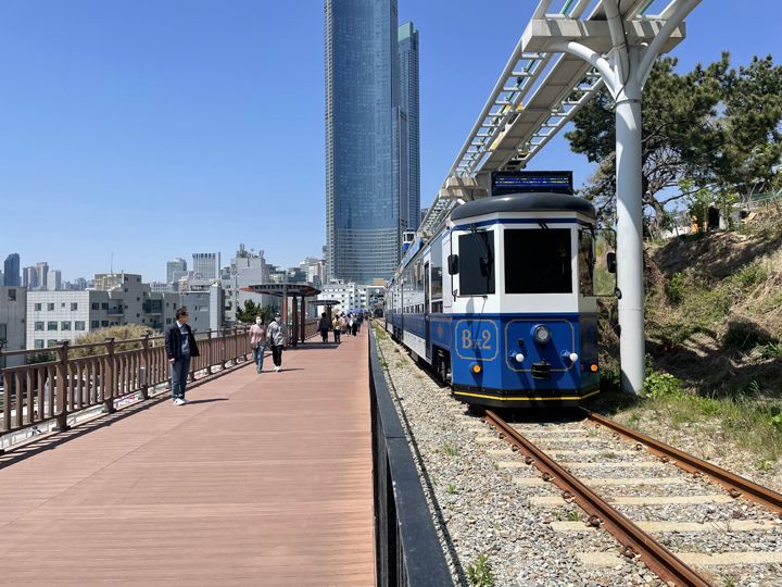海岸列车共有 2 条路线,分别是「Ocean Train」和「Sky Capsule」,前者是欧式复古列车,由尾浦沿着海云台海岸行驶至总站松亭,大概需时 25 分钟,后者是每次只可乘坐 4 人的胶囊型列车,在 7 到 10 米的高空欣赏海云台海岸线,而 2 款列车都有红蓝绿黄 4 色的车厢。