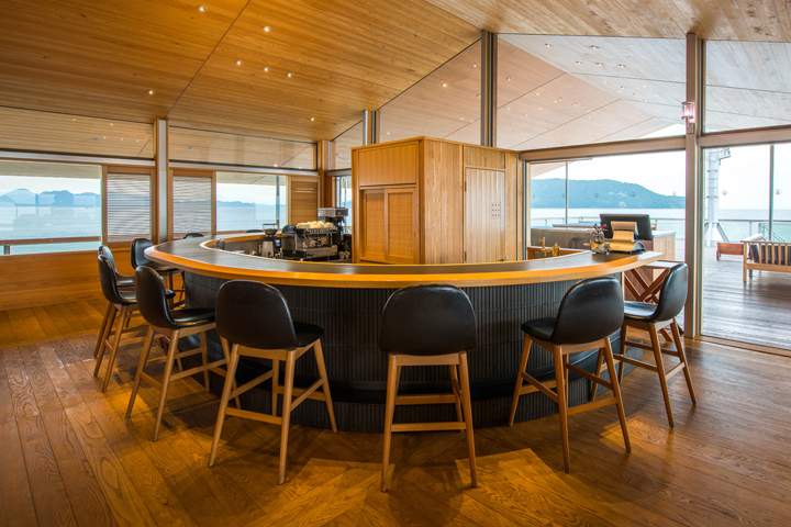 「guntû」的美食体验同样奢华,濑户内海的海鲜珍味在此汇集。由著名主厨加以料理,品味每一口,都有“一期一会”的极致感受。在船首处的Café&Bar也可以小酌一杯,消遣惬意的海上时光。