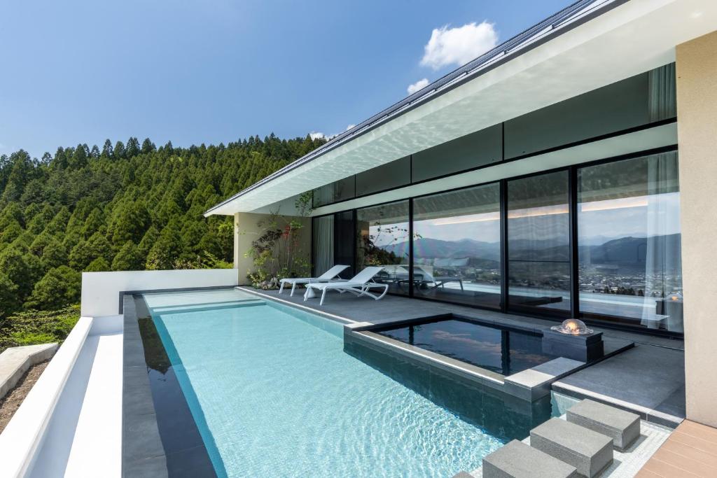十座别墅及九间客房,提供了多种风格的私谧度假体验。房间窗外即是成荫绿树与潺潺流水,与其遥相呼应的是室内点缀的绿植,开阔的露台即可欣赏由布岳的四季美景,无论是享受私汤露天温泉,或者是在躺椅上小憩,都可静静地感受自然的疗愈之力。