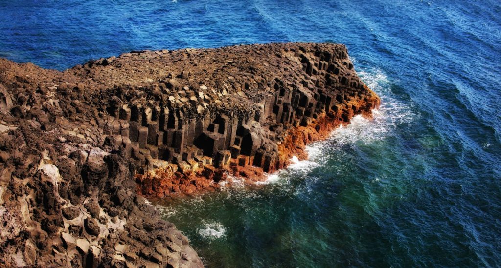 在朝鲜半岛约3300个岛屿中,最大的济州岛可以被看做一座巨大的山。这是因为整个岛屿就是海拔1950米的汉拿山的横卧姿态,显现出和缓的曲线。大约170万年前汉拿山火山喷发而形成的济州岛,地表和地下布满了熔岩喷出的痕迹。这就是象征着济州岛独特景观的玄武岩。不论走到哪里,岛上到处都是布满窟窿的黑色石头。因为石头多、风多和女人多,济州岛也被人们称为“三多岛”。