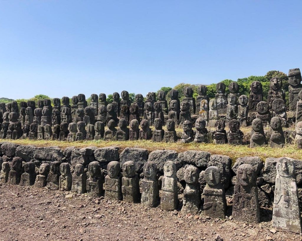 济州平缓山坡上围绕着坟丘四周的矮墙,和守在墓前一脸童真的童子石,都是火山岛济州固有风土和信仰所创造的象征物。通过这些谦逊简朴的造型,我们可以一窥济州人与自然和谐相处的历史和对人生、死亡的思考。
