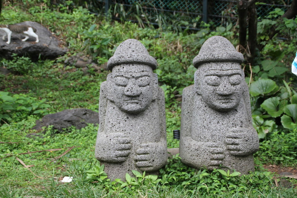 济州的童子石给人以十分亲切的感觉。尤其是18世纪朝鲜英祖、正祖时期的童子石,眼大而线条柔和,具有比较精巧的特征。这可以看做是与陆地往来的影响。每当国丧的时候,济州人就要自请参与陵役,前往陆地。受仁祖在位时1629年下达的出陆禁止令影响,济州人出入陆地不容易,参与陵役成为出岛上陆的好机会。他们根据营造王陵过程中所看到的石像造出了今天看到的童子像。它们本是文臣石的模仿之作,但在技术不过关的业余匠人手里,变成了完全不同形态的石像。由于使用陆地上罕见的玄武岩,济州童子像的形态十分独特。如今,因其独特的简单朴实而具有健康的原始美,成为济州的迷人脸面,广受人们喜爱。