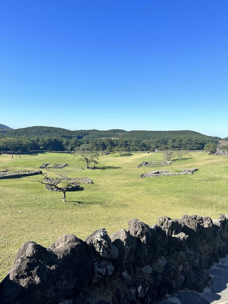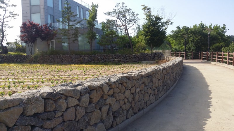 济州的石墙,没有固定的规则和形态,恣意蜿蜒,环绕于大地。而且,这些石墙所绘出的诸多线条,自然得就像是被风吹得各归其位似的。也许正因如此,才会有人说,“济州的土地和石墙本来就是浑然一体。”