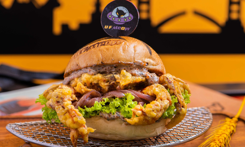 下次去澳门官也街别再只吃牛杂和买手信啦!走进里面特色小巷有一家卖fusion汉堡的店必须要尝一下! UFmeow的汉堡胚是用虎纹的,汉堡配料很丰富,焦糖洋葱黑椒烤蘑菇生菜蕃茄片,每一口都是大满足!汉堡除了美式牛肉饼之外,还有墨西哥辣鸡堡的也不可以错过,每一口都充满着意式风情!
