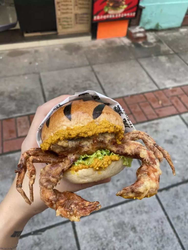 日式天妇罗软壳蟹皇堡和虎皮汉堡,外形时髦内里更是小众味蕾的享受,满满的蟹膏完美配合了天妇罗的软壳蟹,来这汉堡店必须尝尝。