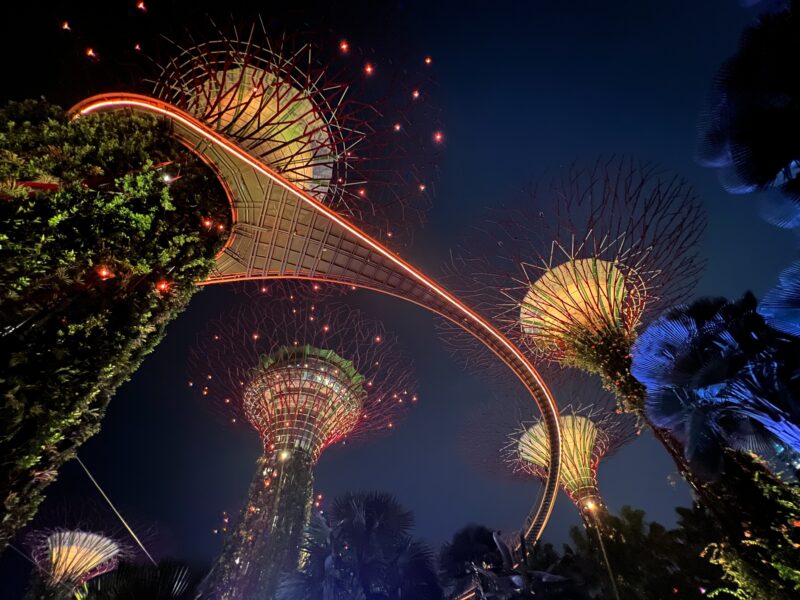 滨海湾花园位在新加坡湾区,是一座面积广阔、色彩缤纷又充满未来感的公园,巨大的贝壳状温室模拟高冷山区气候,内有数百棵树木和植物可以探索,良好的环境让滨海湾花园成为老少咸宜的绝佳目的地,其中一个热门景点就是「超级树」。
