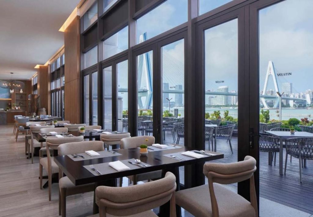 酒店的五楼的健身中心也令人印象深刻,全落地玻璃窗的设计可以让人人在锻炼的同时也能欣赏到美丽的世纪大桥景色,为锻炼增添了乐趣和动力。户外露台上的露天泳池更是令人向往,在畅游的同时可以欣赏到远处的入海口景色。