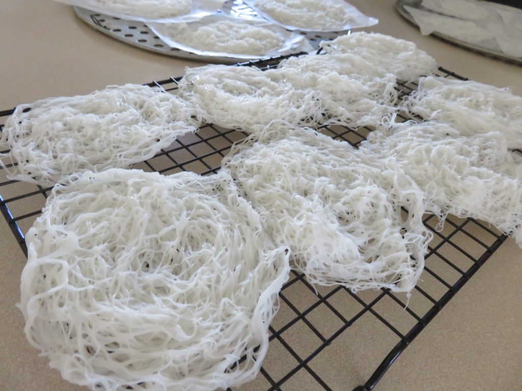 这道印度小吃源自南印度和斯里兰卡,南传之后在马来西亚落戶。欧美人把它叫做String Hoppers(线条跳跃者)。它是用米浆、玉米粉和椰水做成的小吃,可用來沾糖和椰絲当点心吃,也有素食者将它配着咖哩当主食。小点心只有黑糖、白糖和椰丝佐伴,是个简单但美味的小吃哦!