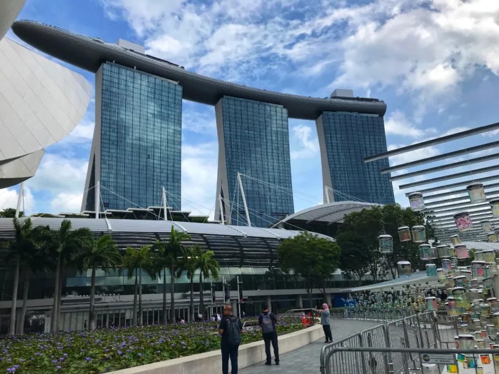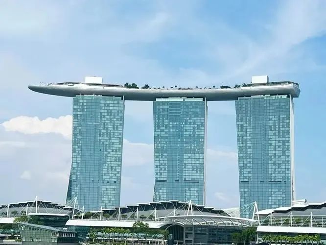巨大的船型屋顶平台连接着三座塔楼,上面除了无边泳池,还种植了大量的树木,营造花园体验。滨海湾金沙是新加坡的新地标,三座55层高的大楼托着顶层的“金沙空中花园”和无边际泳池,底层为金沙酒店、大型购物中心和娱乐城。