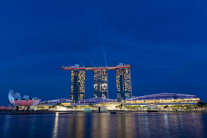 Wonder Full 奇幻弥漫水幕表演:东南亚地区大型的水幕电影,声光效果十分震撼,亦可在对岸的鱼尾狮公园看到金沙酒店的灯光show。 金沙酒店:建筑师莫什·萨夫迪(Moshe Safdie)的代表作,建成后也一直是新加坡的地标性建筑。金沙酒店高198米,由三座塔楼组成,外观宛若帆船,极富动态感。三座55层高的酒店大楼共有2600多间客房,立面的玻璃幕墙设计开拓了景观视野。顶楼是一个宽敞的公共平台,有花园、餐厅、和位于57层的“无边界”的泳池,还包含一个长达66.5米的观景台。