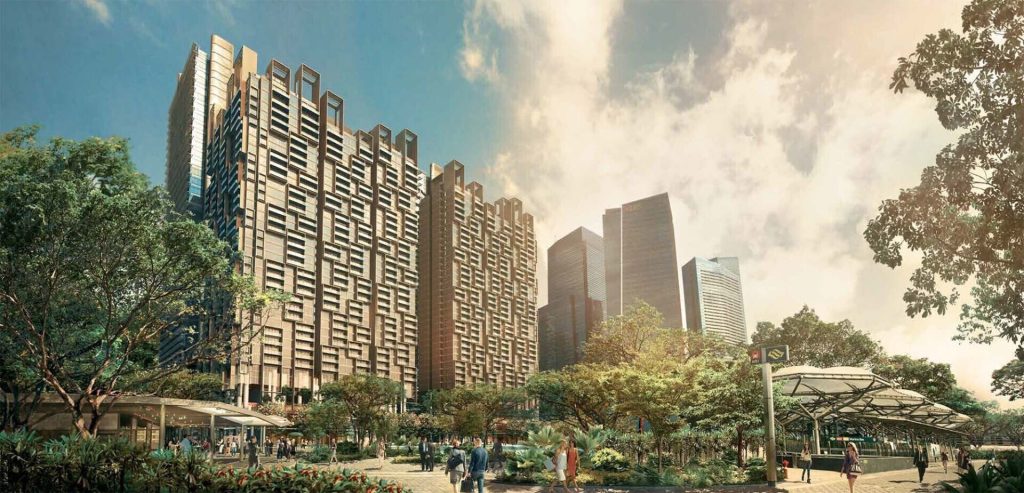 Marina One商住综合楼盘,连接滨海湾金融区内的三处地铁站,项目包括了两栋30层高的甲级办公楼盘,超过14万英尺面积的大型零售餐饮店区,两栋34层高的摩天高级公寓楼,以及位于高楼建筑中央,超过6000平米面积的绿荫公园。整体设计诠释了新加坡向来被赞誉的“花园中的城市”生态系统模式,项目于2017年底竣工。
