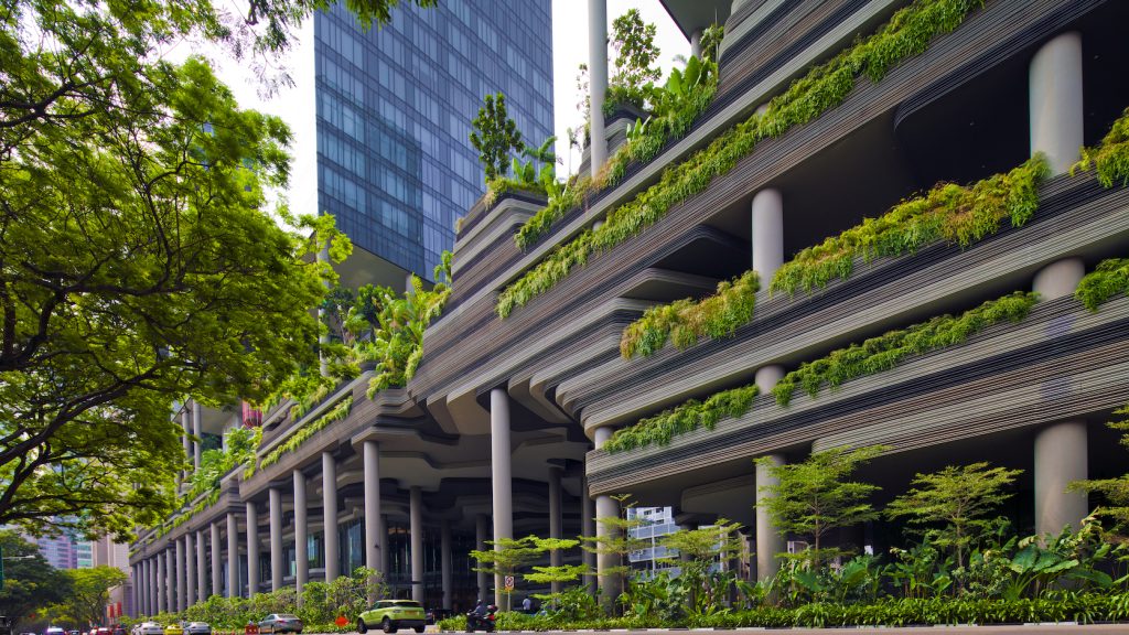 皮克林宾乐雅酒店是新加坡市中心一处奢华的花园绿洲。WOHA建筑事务所设计,项目用地面积6959平方米,建筑面积29811平方米,酒店高190米。采用花园酒店理念,这座“花园酒店”其拥有面积约15000平米,并有四个标准层的繁茂的花草树木和小型瀑布作为其景观的主题,是酒店总占地面积的两倍以上。除了多种姿态各异的植物群将酒店院落装点得格外美丽,皮克林宾乐雅是新加坡首家使用太阳能电池供电的零耗能酒店,更采用综合性节能节水措施,例如使用光线、雨水和动作感应器,以及集雨和 NEWater(循环系再用水)。