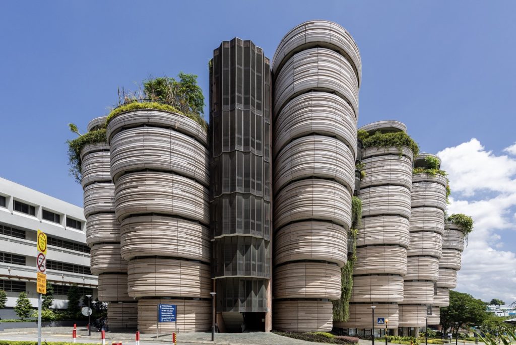 由WOHA建筑事务所设计的Kampung Admiralty是2018年世界建筑节年度最佳建筑奖获奖作品。它是新加坡首个将所有公共设施和服务空间融合在一个建筑体量里的公共建筑综合体:项目下层区域是一个社区广场,中层区域是一个医疗中心,上层区域则是社区公园和老年公寓,形成了一个垂直村落。这三个不同层面的空间囊括了各种建筑功能,以促进功能空间之间的交叉性和多样性,同时将地面空间留给大众,方便其进行各种活动。这种设计概念拉近了医疗健康、社交活动、商业和其他便利设施之间的距离,又加强了多代人之间的联系。