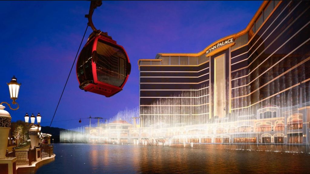 永利最出圈的当属酒店门口的表演湖和缆车了,坐在缆车上可以俯瞰2.68万平方米的表演湖以及酒店的户外泳池,音乐喷泉表演每天都会上演,气势恢宏。