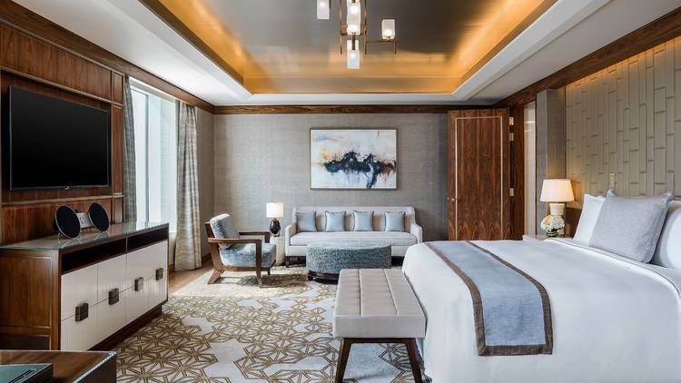 772 间客房、套房及別墅,由世界级设计师精心设计。房间是现代时尚的设计风格,从空间结构到家具软装,大多采用多边形设计,显得格外有质感。