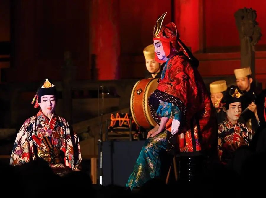 活动舞台设于首里城正殿,黑夜里在灯光投影及皎洁月光的衬托下,配上古典优雅的琉球传统舞剧及音乐,仿佛时光回到了琉球王国时代,再现了王朝曾经的繁荣与光华。