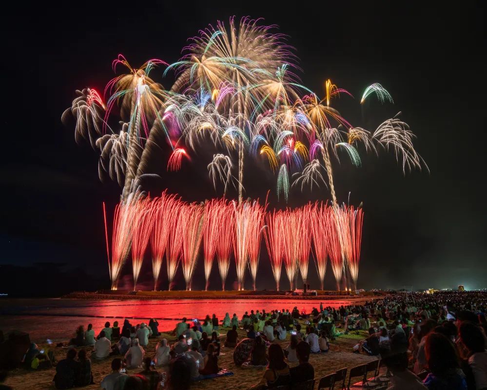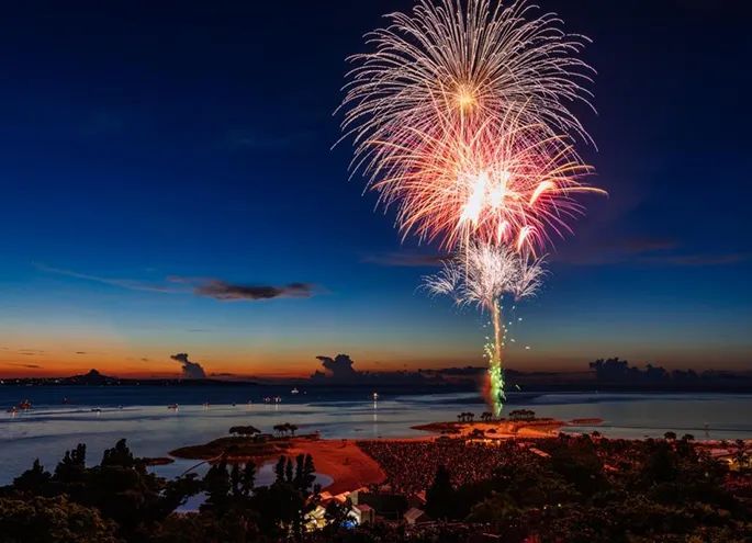 「海洋博公园花火大会」号称为冲绳最大的花火大会,每年7月中旬在「翡翠海滩」海滩举行,届时上万发烟火在海面绽放,场面非常壮观~