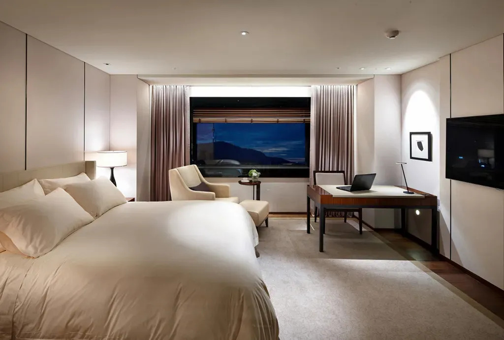2013年室内设计大师Peter M. Remedios以豪华游艇的客舱为灵感翻新酒店,沉稳静谧的客房风格搭配窗外南山的青翠景致,都会桃源的度假感油然而生——如果选酒店挑花了眼,那么住新罗绝不会出错。