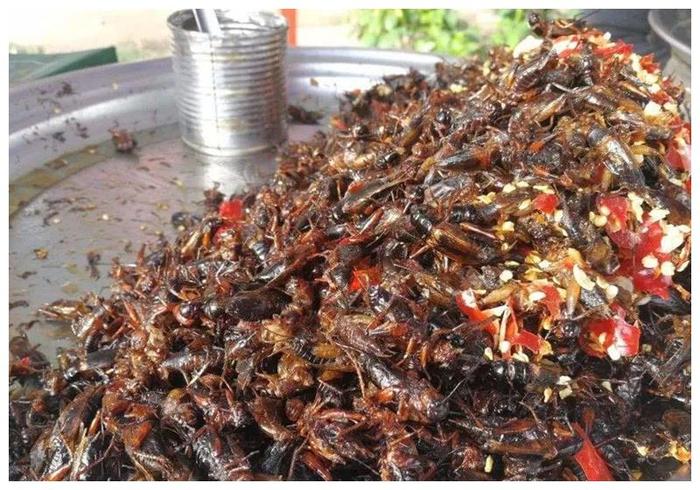 首先要介绍的是柬埔寨的一道传统小吃——蚂蚱炒虫。这道菜通常由新鲜的蚂蚱和虫子经过精心炒制而成,外脆内嫩,口感独特。据说蚂蚱和虫子富含蛋白质和微量元素,是当地人民的传统营养食品之一。如果你敢尝试,一定会被其香脆的口感所惊艳!