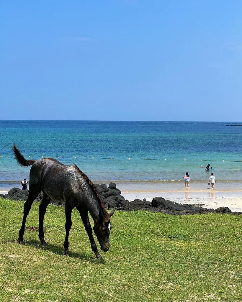 牛岛因为其形似一头牛躺着的样子而得名,这里蓝色的济州大海、温馨的草地、白色的沙滩让人印象深刻。