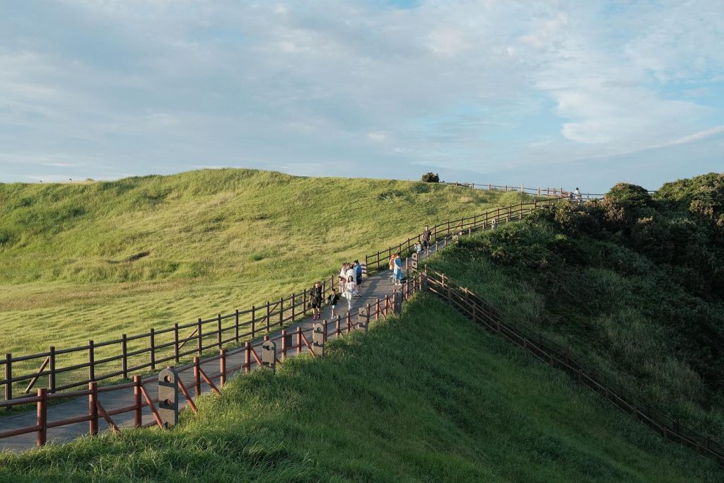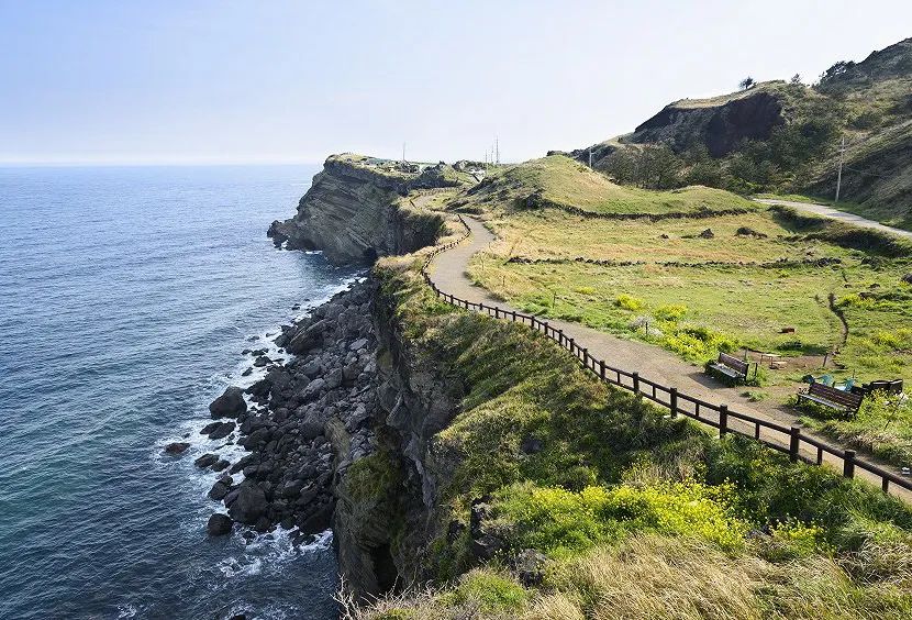是著名的韩剧拍摄地,春日,黄色的油菜花与城山日出峰组合而成的迷人海岸线风光很是壮观;秋日,草地上长出的野花与紫芒处处散发着浪漫的气息。