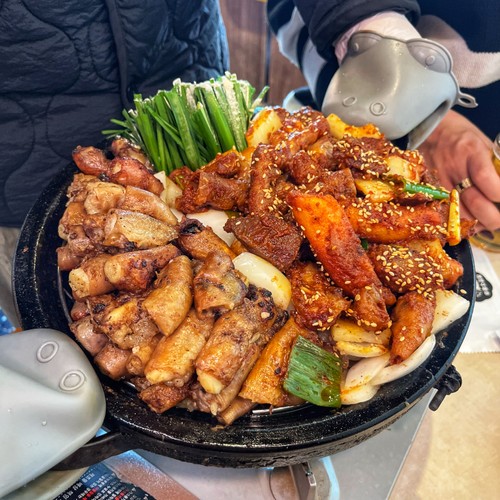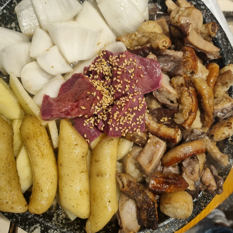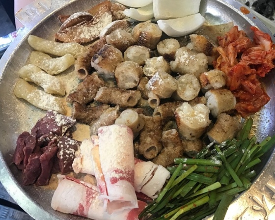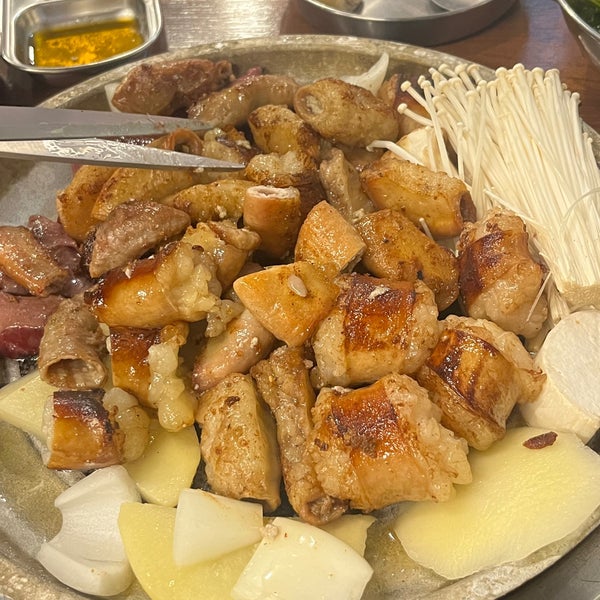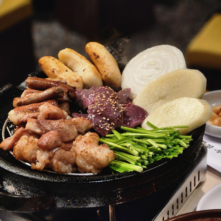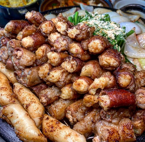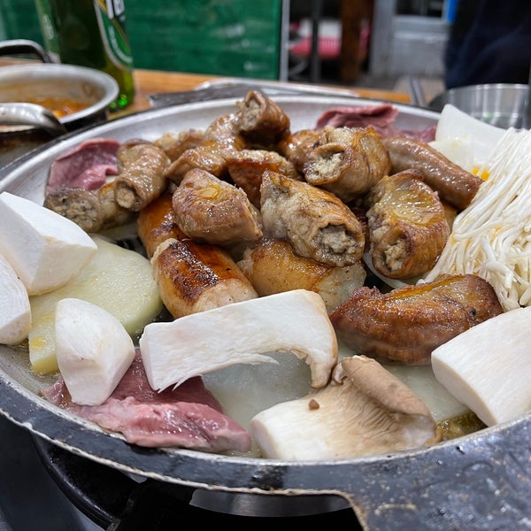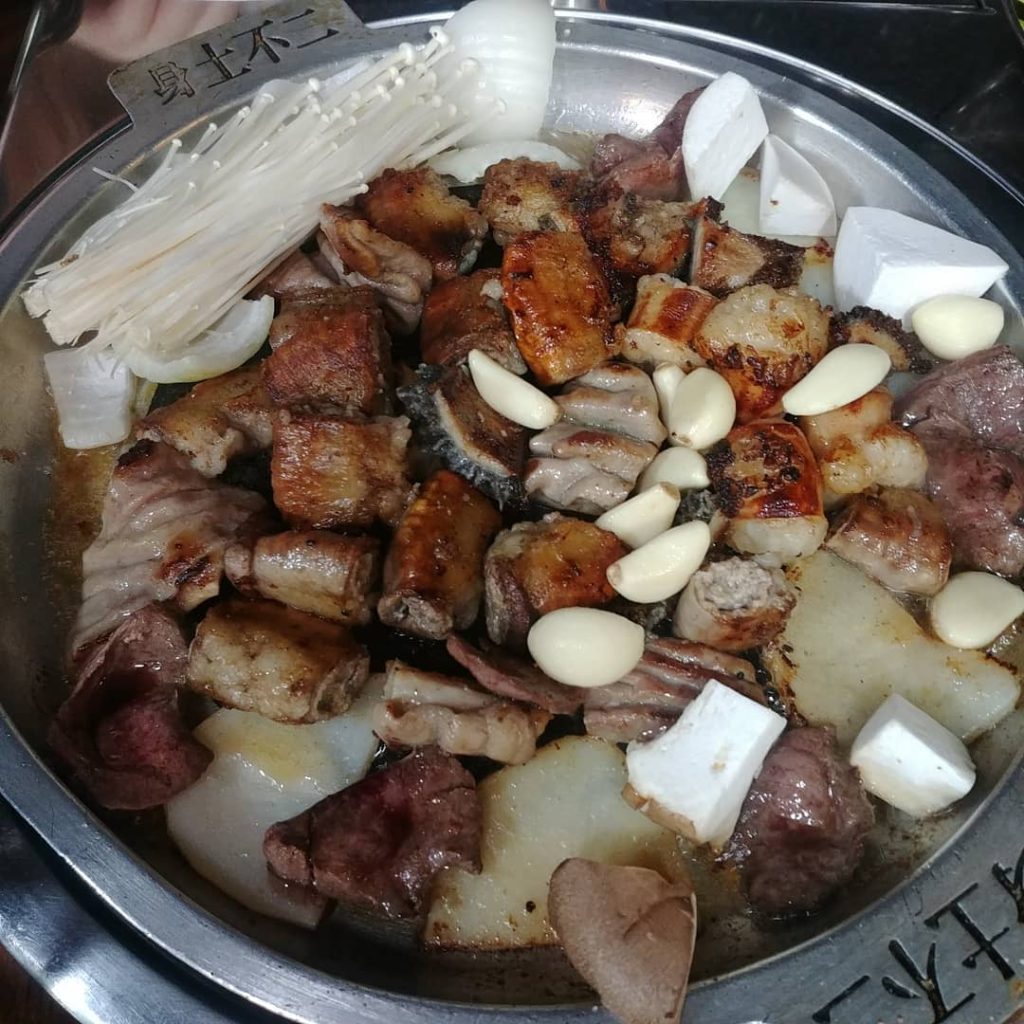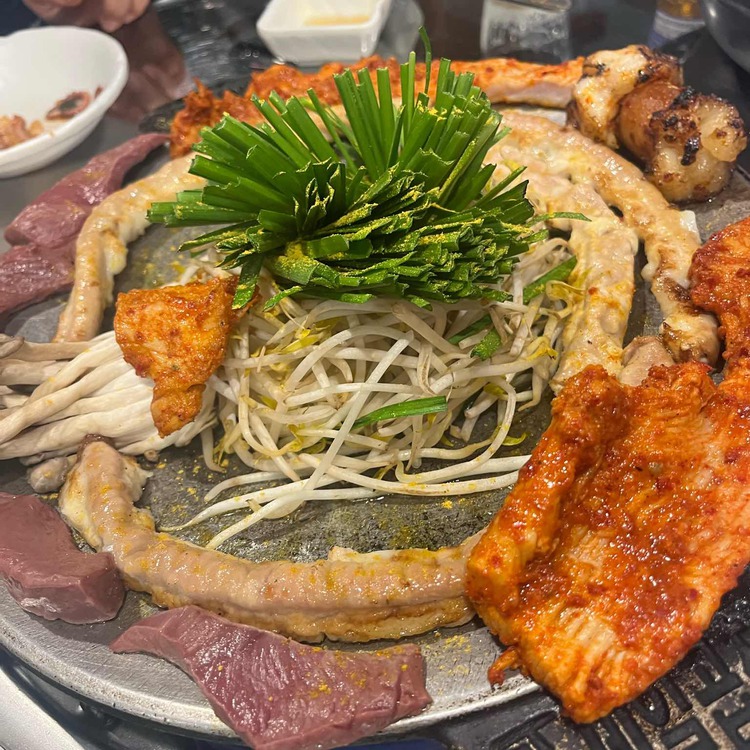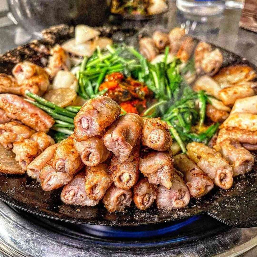 这家开了好几年了,烤牛小肠250g是29000韩元,大肠价位相同,全家福共580g价位是63000韩元,老板亲自给烤,还很有趣,烤出来的肥肠很香,一点腥味都没有。一定要趁早去,不然会排很长的队。