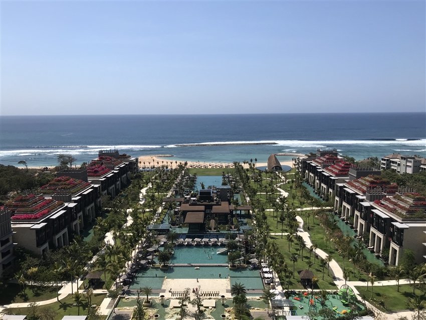 除了绵延的白色沙滩、景观水池、蜿蜒的礁湖之外,酒店还特别地将巴厘岛传统的建筑元素融入其中。