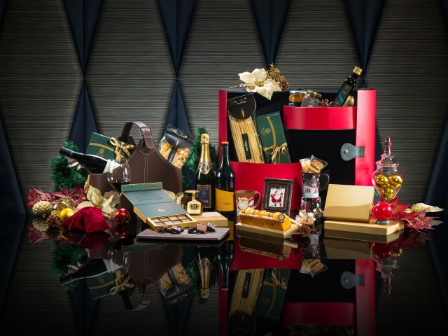 位于澳门新葡京酒店大堂的圣诞礼品屋,不但能让你购买火鸡等的圣诞美食,令你能根据自己口味组合心仪的圣诞礼篮。