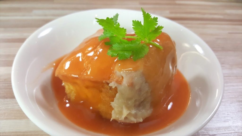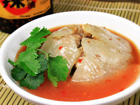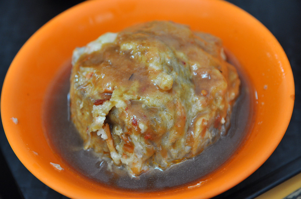 淡水阿给,台湾新北市淡水区有名的小吃。“阿给”是日文“油豆腐”发音的直接音译。是一种将油豆腐塞入冬粉,再裹上鱼浆蒸煮的食物,食用时搭配特制的甜辣酱,口感独特,也是早餐时段不错的选择。淡水阿给的由来,据说是源自1965年,由一位名叫杨郑锦文的女士所发明,起初是为了不想浪费卖剩的食材,而想出的特殊料理方式。他们所用的油豆腐是向淡水的某制造商所购买,阿给里的粉丝放的是浸过调味汁的肉燥冬粉,再用红萝卜丝跟鱼浆封住封口,之后再蒸熟,最后再淋上由杨树根先生(杨郑锦文之夫)所特制的酱料,这就是最原始的淡水阿给。创始店位于淡水真理街上,因而被人们称为淡水阿给。淡水阿给的主要做法是,将油豆腐的中间挖空,然后填充Q弹顺口的肉燥粉丝(台湾叫冬粉),浸泡过卤汁,以鱼浆封口,加以蒸熟,食用前淋上甜辣酱或其他特殊酱汁,加以香菜和葱花点缀,便可享用。