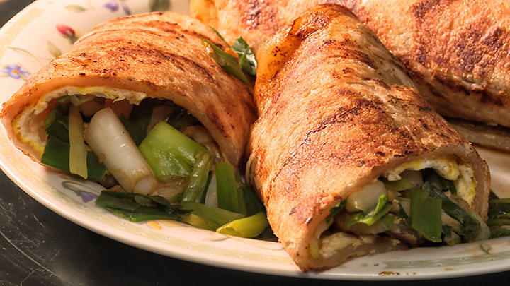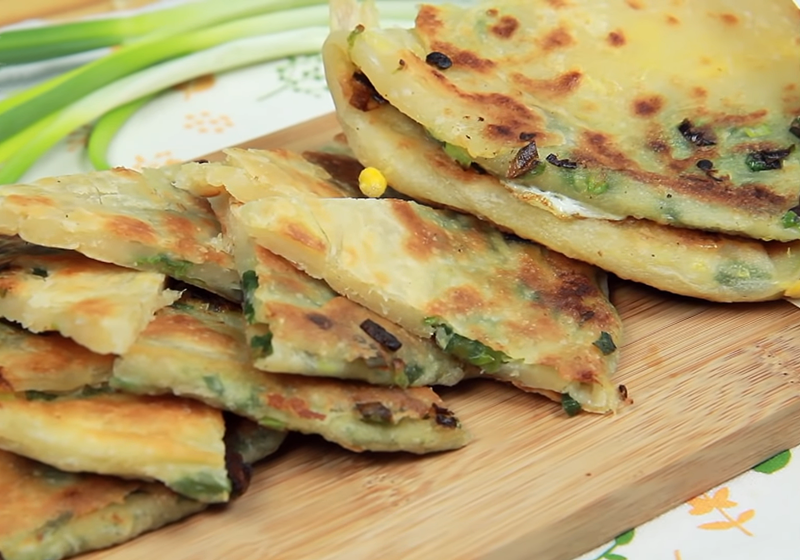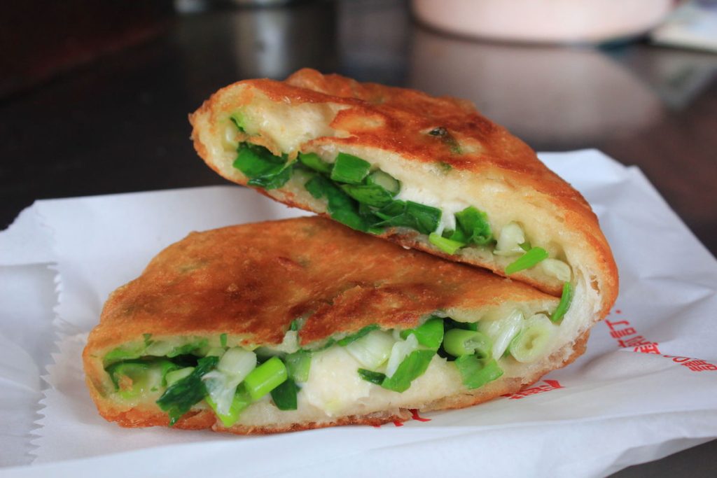 宜兰三星葱油饼最大的特点就是馅多,宜兰人在制作葱油饼时,放葱是绝不手软的,最常见的葱油饼,葱比面的量还要多。喜欢吃葱的朋友,吃这款葱油饼可以满足吃葱味蕾,可以大快朵颐,可以尽情享受。这种类似炸出来的葱油饼做法,成品特别酥脆,也可以煎一个鸡蛋叠在上面,加一些酱汁和辣椒酱,吃起来会更加美味。