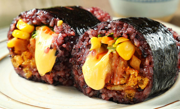 台湾饭团,台湾饭团起源由来是日本,而且是日本人经常吃的食物,里面还放有花生、萝卜干、海苔,口味独特。台湾的饭团选用上等优质糯米做原料,以中西结合式营养食材为馅料,调料精心搭配,味道美味可口,口味丰富营养全面。常见的馅料有海苔、鸡肉、咸蛋黄等,早上赶时间上班族的理想选择。