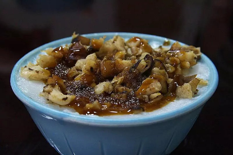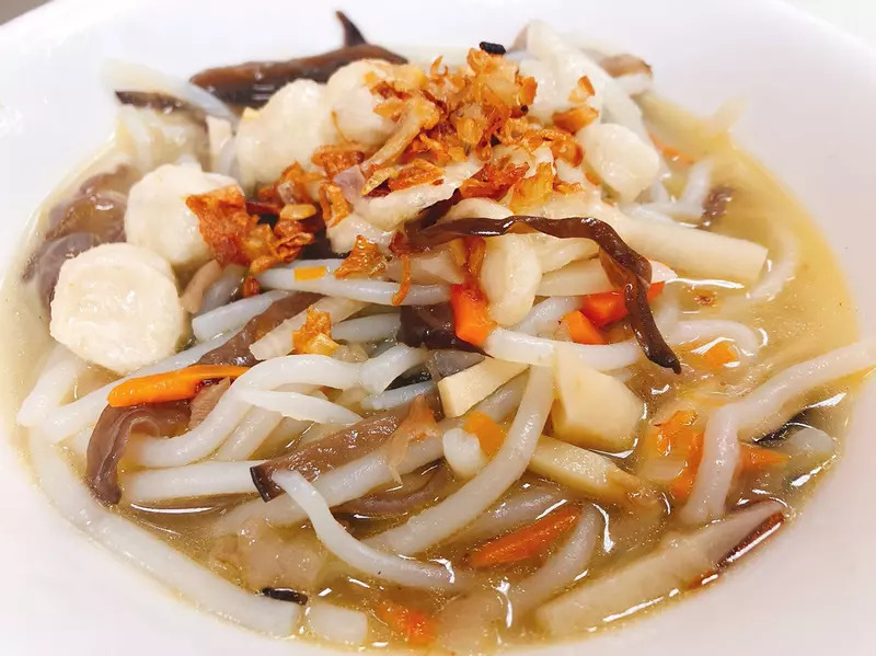 米粉羹,宜兰特色小吃之一,宜兰特产的米粉搭配特制的羹汤,里面还会有肉丝、菇类等配料,口感细腻滑顺,很适合当早晨。在宜兰,售卖米粉羹的小吃店大都是已经经营了几十年的老店,有固定的客源,味道十分正宗。米粉羹里充满了竹笋、木耳、黑轮、小鱼干、虾米等配料,再加上爆香的大蒜与熬出的大骨高汤加上太白粉勾芡而成,味道浓郁,香味宜人。米粉羹最好吃的季节通常是在6到7月,因为这个时间段的竹笋最好吃,又脆又不苦,最适合拿来做米粉羹的配料,如果你是这个时间段打卡到宜兰,一定要吃一碗热乎乎的米粉羹。