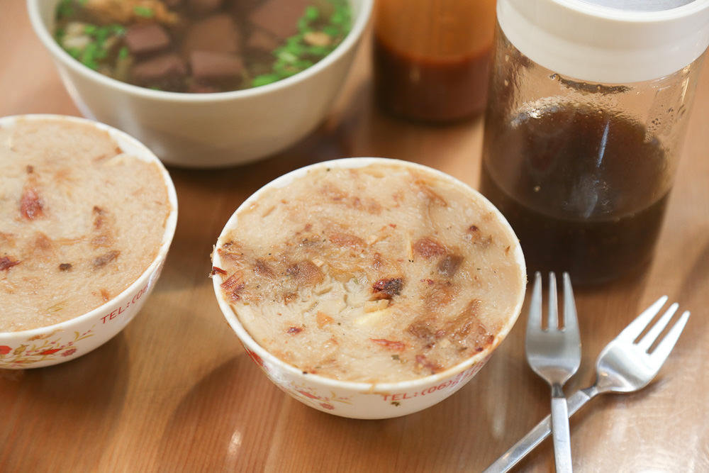 碗粿,又称碗糕,因用碗盛而得此名,是闽南、台南等地的传统特色美食。主要以米浆为主料,内含肉末、虾仁、香菇等,蒸制而成,口感滑嫩,搭配甜辣酱或是酱油膏一起食用,风味十足。碗粿在台湾各地又有不同的口味,作法也各有差异。主要分成甜、咸两种。甜碗粿是米浆拌入糖蒸熟而成,黑糖口味的最为常见。咸碗粿大致离不开小香葱、虾米、瘦猪肉片或肉沫、香菇、咸蛋黄或卤蛋、虾仁干等,客家人还会放萝卜干碎和豆干丁。做法上也大体是两种,在米浆内加入酱料调味蒸熟,或是在米浆外加料,将米浆先蒸过,把配料铺上面再蒸一次,亦或是把炒熟的配料直接加上。