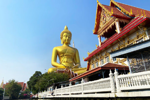 水门寺它是始建于1610年的皇家寺庙,但期间经历过遗弃,如今我们看到的它是修复重建于2020年的新地标。最壮观的自然得是这尊接近20层楼高的金色大佛,很是瞩目。重点是寺庙是不收门票的哦!