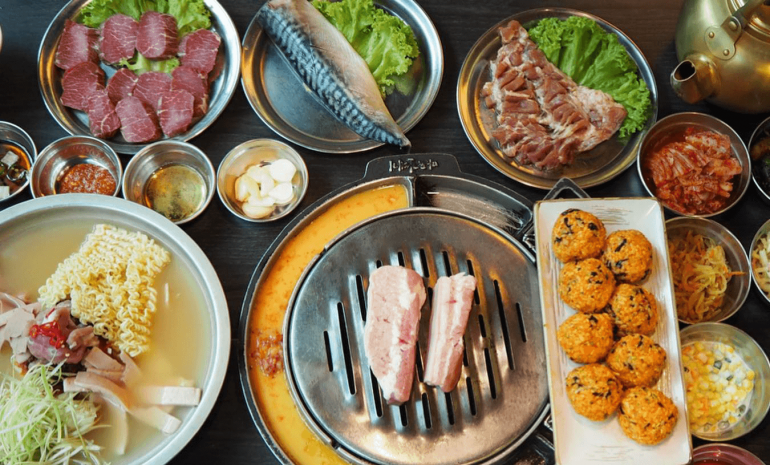 泡菜、参鸡汤、辣炒鸡排、韩式烤肉、韩式拌饭、冷面、酱螃蟹/猪蹄/鸡、部队锅、煎饼、本粥、紫菜包饭