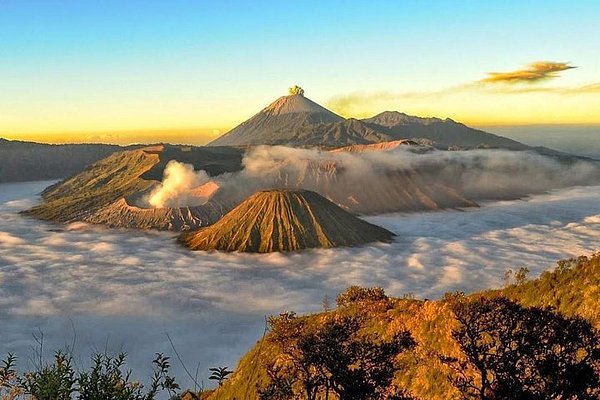 这个火山最震撼的地方在于它沟壑纵深的苍茫与荒凉,这也是它最像月球表面的地方。而且几乎每一天这里的日出都是伴着云海出现的,很震撼很美(在帕南佳瞰观景台就能看到)。去火山必须要坐吉普车,最方便的就是在玛琅或者泗水当地找个团。来这里都会选择看日出,基本上都是通宵行程,凌晨出发,大概半夜三四点钟到达Bromo火山观景台。
