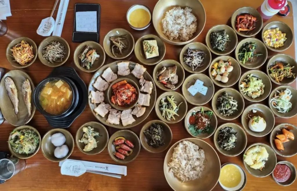 韩定食是将韩国的传统饮食像西式大餐一样按顺序依次上席的现代式套餐,以韩国传统菜肴为基础,由前菜,谷物为主的主食和副食以及餐后甜点组成。