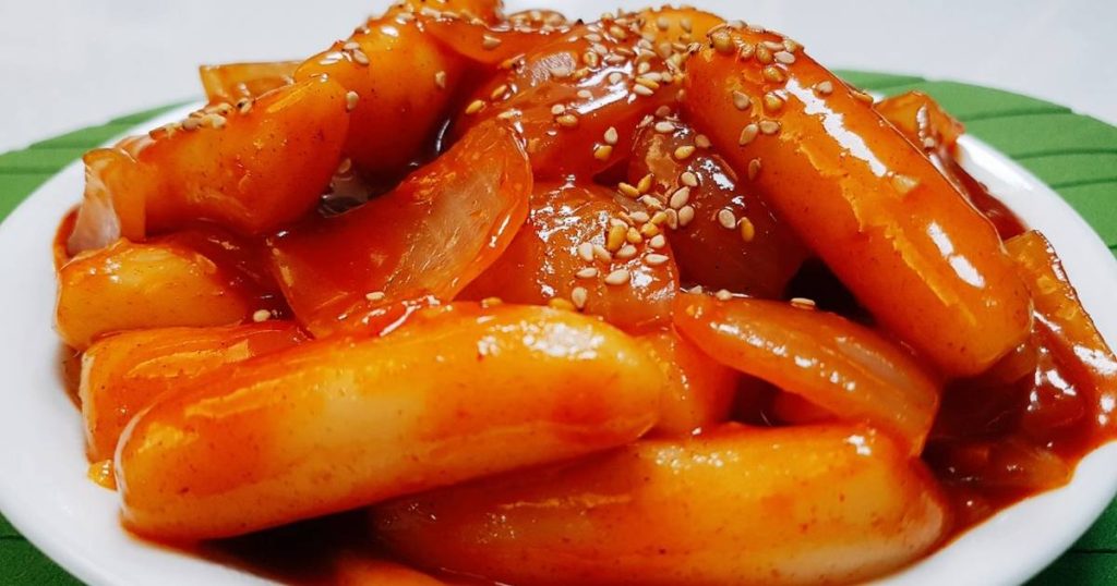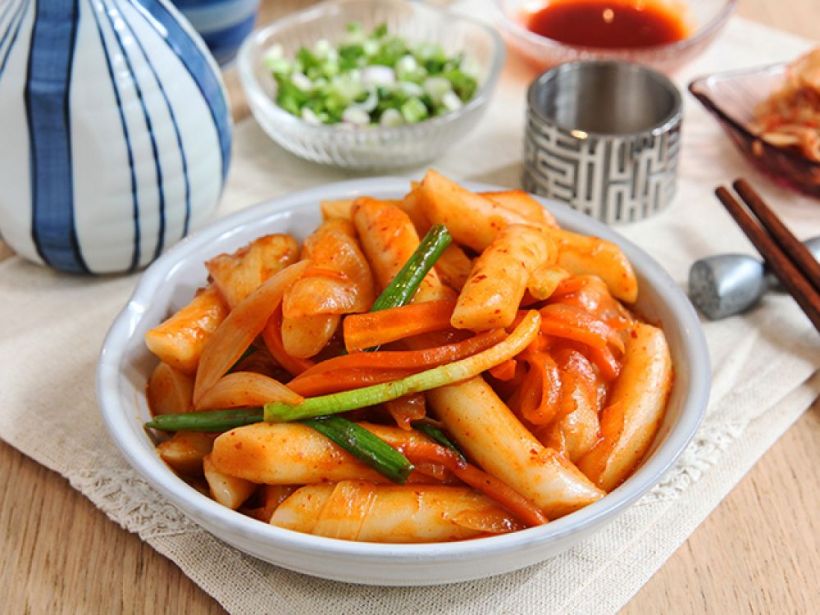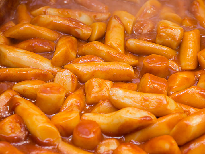 将纯糯米年糕、鸡蛋、鱼糕、拉面、劲面以及各种蔬菜放在一起,加入特制的调料进行现场炖煮,一会就能吃到热气腾腾的炒年糕了。