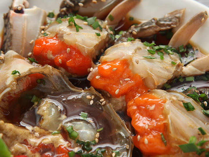 酱蟹是用酱油腌制过的生蟹,虽然是生的,但没有半点腥味,生蟹肉入口即化,拌着特制的酱汁,让本来对生鲜有抗拒感的人也会吃一次就上瘾。